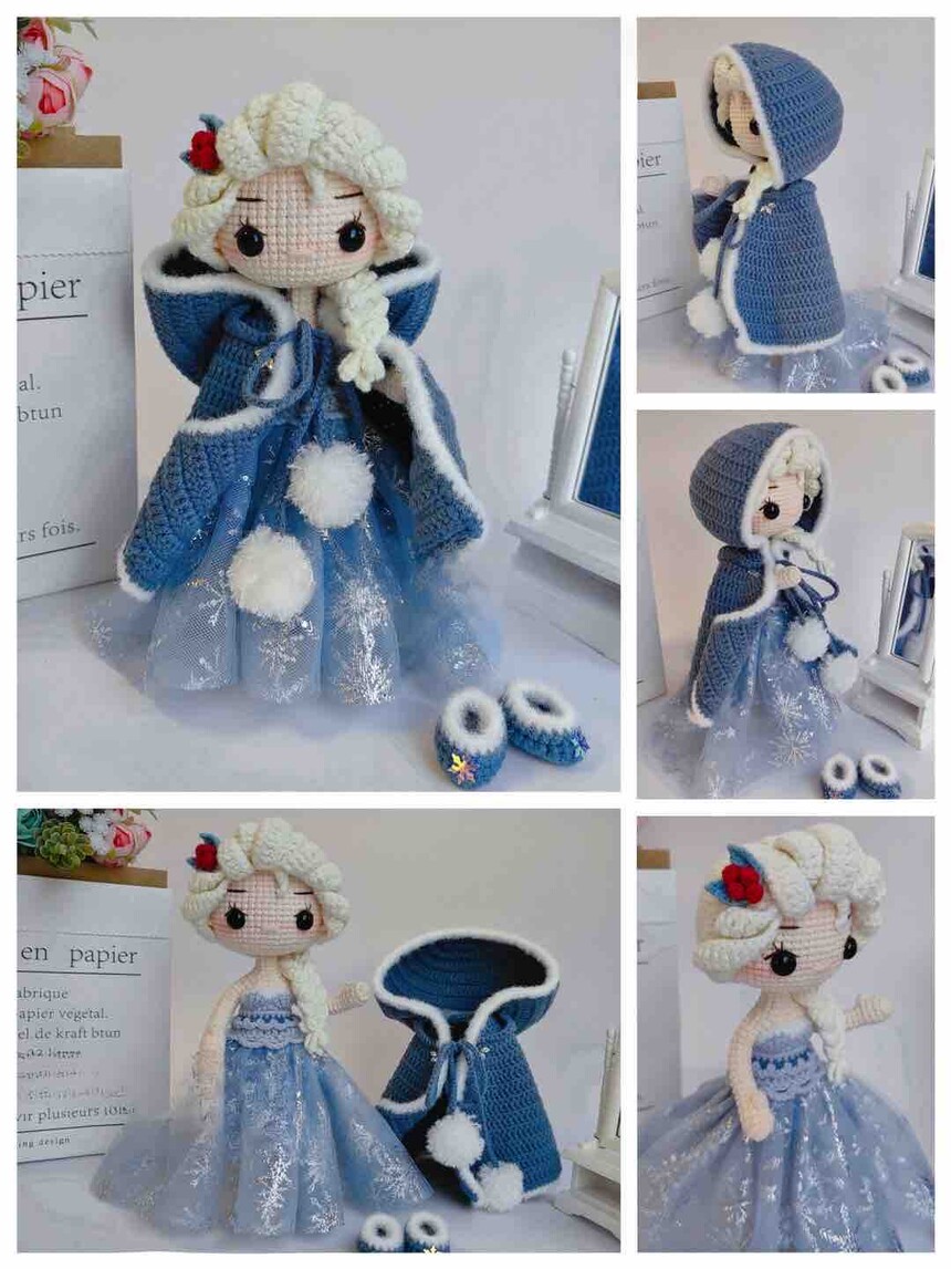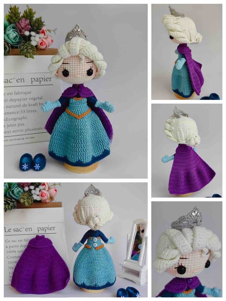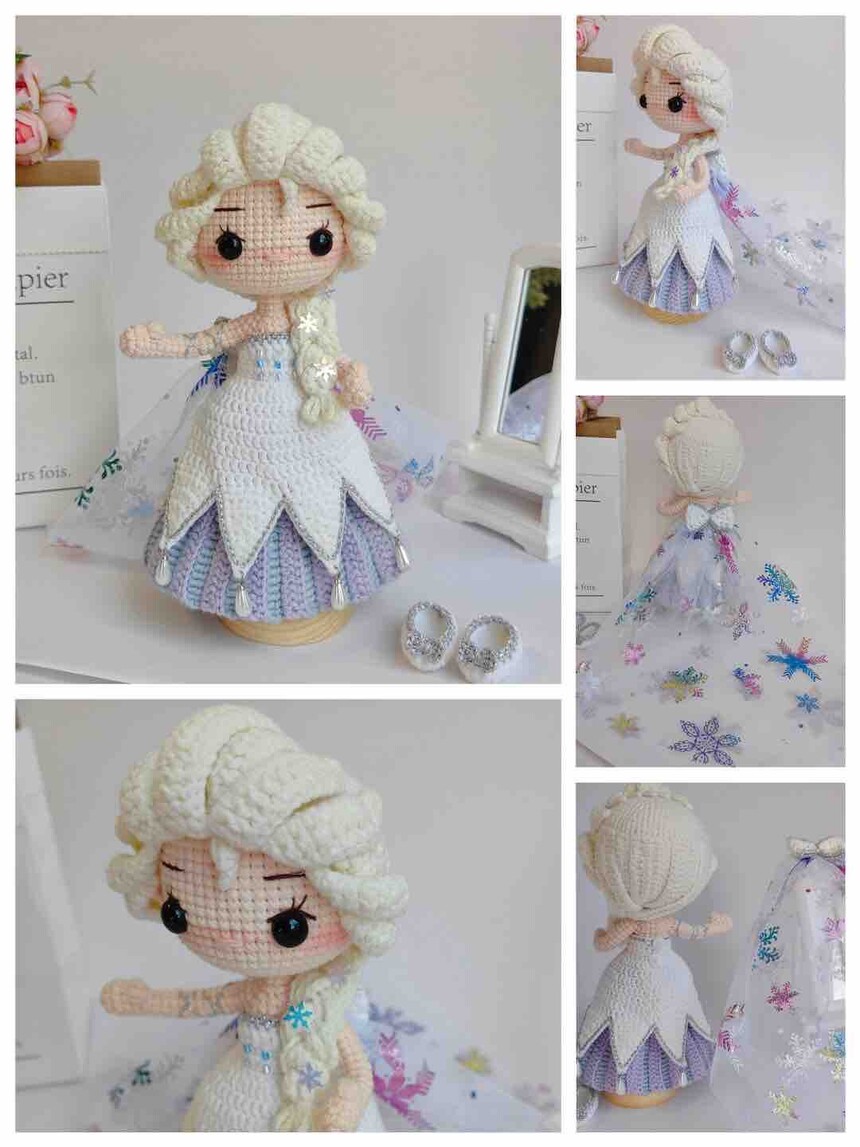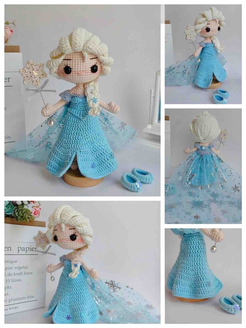 Princess Elsa Crochet Doll Figure - Disney Frozen Handmade Collectible Amigurumi